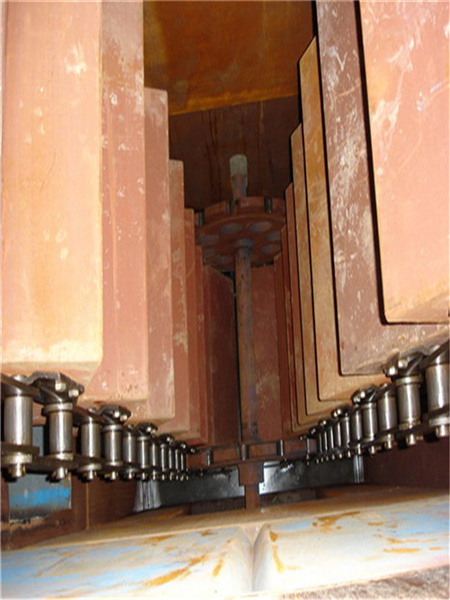 1.上部裝置:安裝有軌道(雙排道),防止鏈條擺動(dòng),逆止器,防止料斗回轉(zhuǎn),物料阻滿下部機(jī)殼,卸料口裝有橡膠板防止回料。