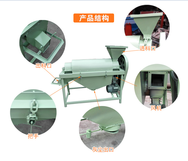 進(jìn)料口里面有一個調(diào)節(jié)擋板可以調(diào)節(jié)物料進(jìn)入多少。出料口為了配合裝袋我們上面有袋子的掛鉤,當(dāng)然出料口可以根據(jù)您的實(shí)際情況進(jìn)行定做,風(fēng)機(jī)就是將水稻芒還有灰塵等輕小物料直接吹出來,電機(jī)我們采用的是全銅線圈電機(jī),耐用,質(zhì)量好。