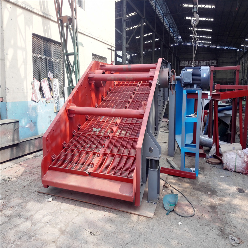 振動篩采用雙振動電機(jī)驅(qū)動,當(dāng)兩臺振動電機(jī)做同步、反向旋轉(zhuǎn)時,其偏心塊所產(chǎn)生的激振力在平行于電機(jī)軸線的方向相互抵消,在垂直于電機(jī)軸的方向疊為一合力,因此篩機(jī)的運(yùn)動軌跡為一直線。其兩電機(jī)軸相對篩面有一傾角,在激振力和物料自重力的合力作用下,物料在篩面上被拋起跳躍式向前作直線運(yùn)動,從而達(dá)到對物料進(jìn)行篩選和分級的目的??捎糜诹魉€中實(shí)現(xiàn)自動化作業(yè)。具有能耗低、效率高、結(jié)構(gòu)簡單、易維修、全封閉結(jié)構(gòu)無粉塵溢散的特點(diǎn)。篩分目數(shù)400目,可篩分出7種不同粒度的物料。
